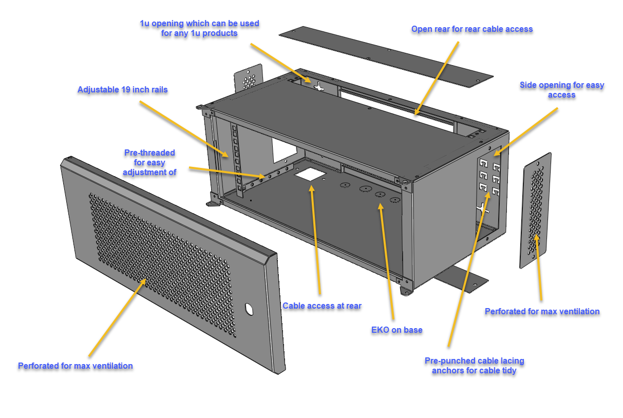 Can be mounted with door opening to the left or to the right which ever way is required. Open back for bringing cable through the rear with additional cable access to top and bottom of cabinet.