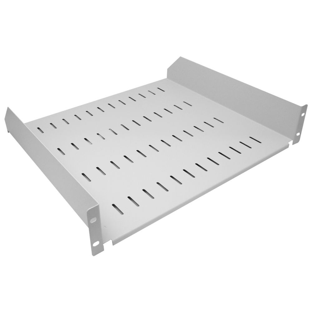 2u 19 inch Universal Front Mounted Rack Shelf Modem/Cantilever Shelves with added slots in the base for addition ventilation of equipment. Ideal for data cabinets.