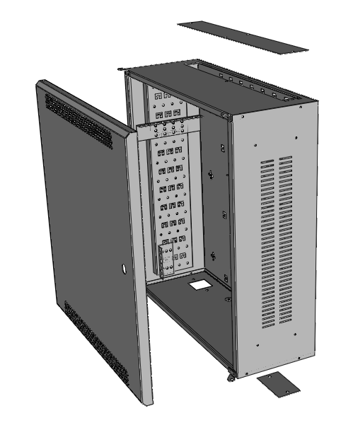 - Cable access at the base via 2 opening supplied with blank panels